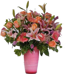 ramo de 18 rosas salmon y lirios