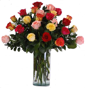 ramo de 24 rosas de varios colores jarron